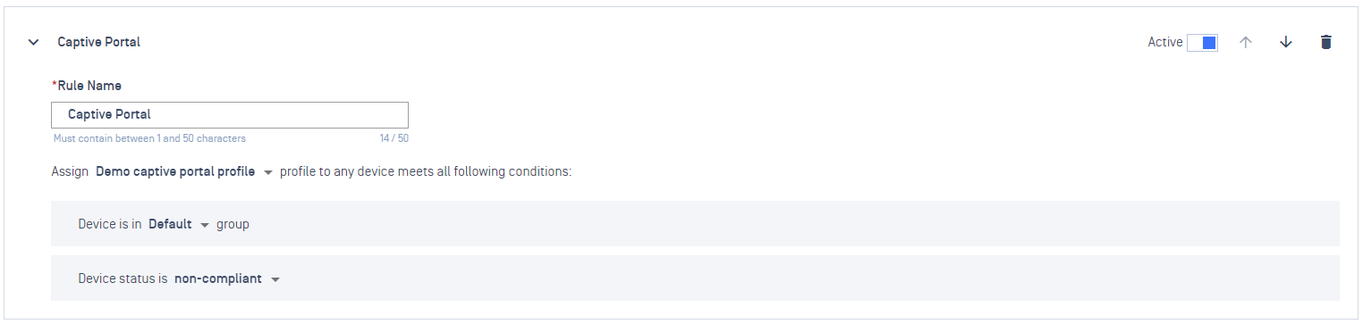 - On Rules tab, add a new Rule and select to assign to the above Captive Portal profile