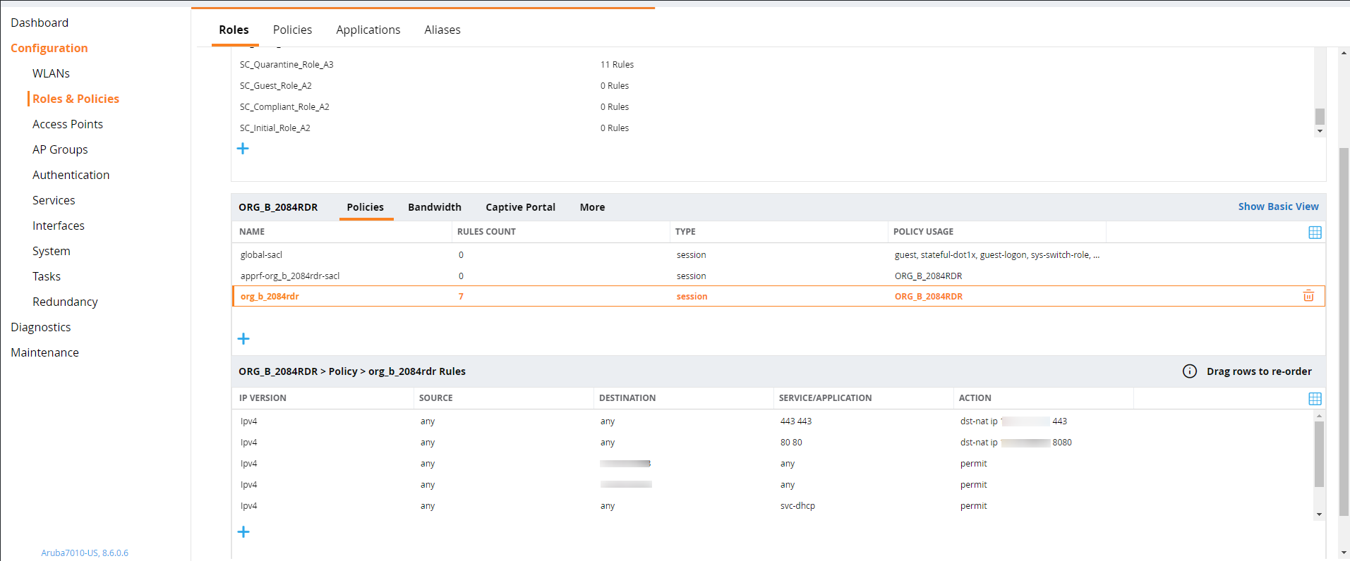 To configure Access Rules for Network Vendors that support DNAT (ex: Aruba), perform the below steps: