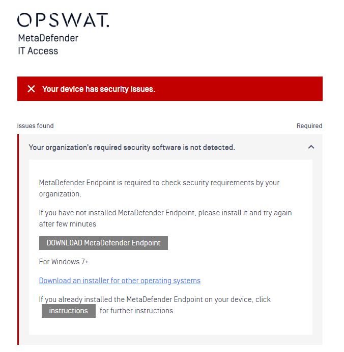 - If the agent is not installed on that machine, the browser will be redirect to a remediation page, prompting the user to install Agent.