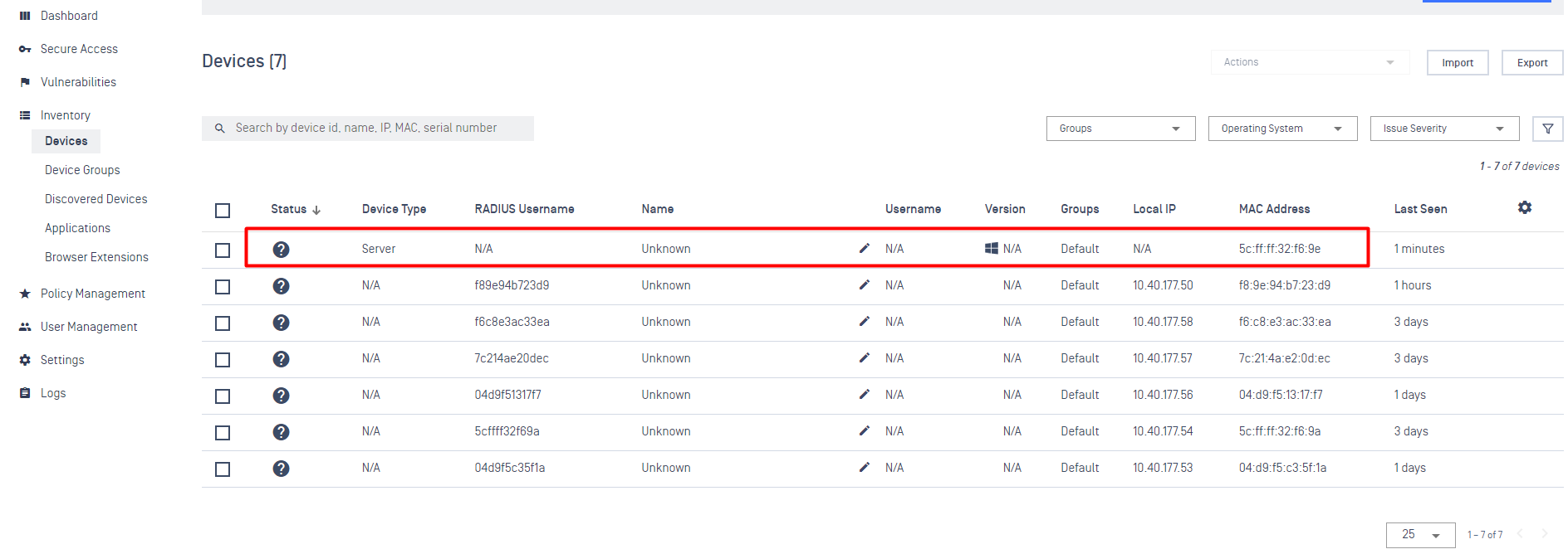 - RADIUS NAC can enforce the Unknown Device by mapping the Device's information with multiple conditions in RADIUS NAC Rules. We will use the same Rule for this scenario.