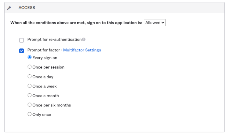 - Your critical application is now configured to require IdP MFA on every sign on