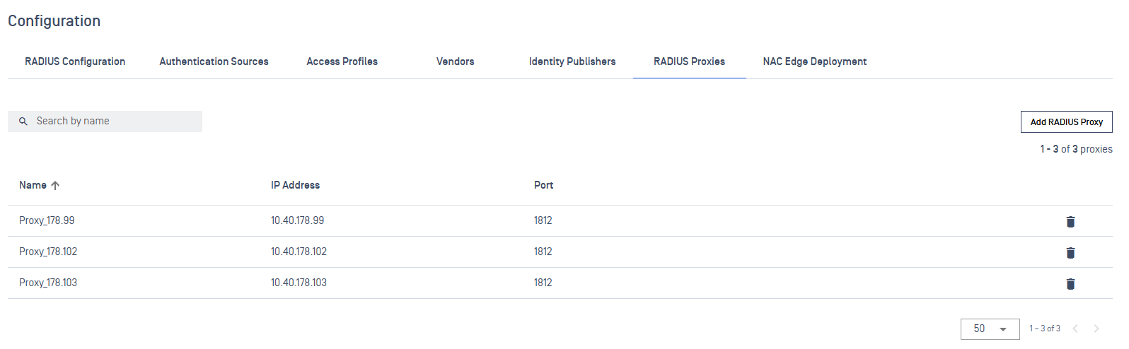 Navigate to My OPSWAT Central Management → RADIUS NAC → Configuration → RADIUS Proxies