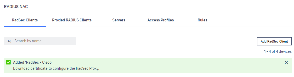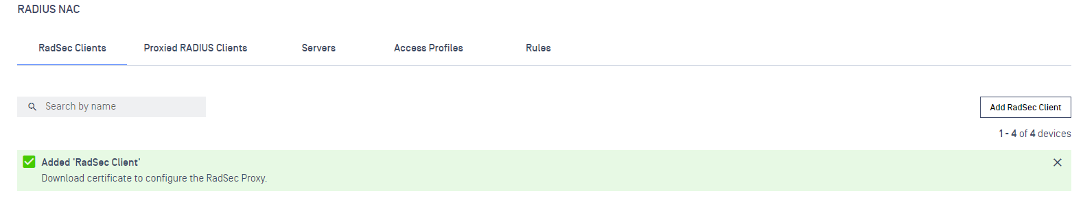 - Click on RadSec Clients tab