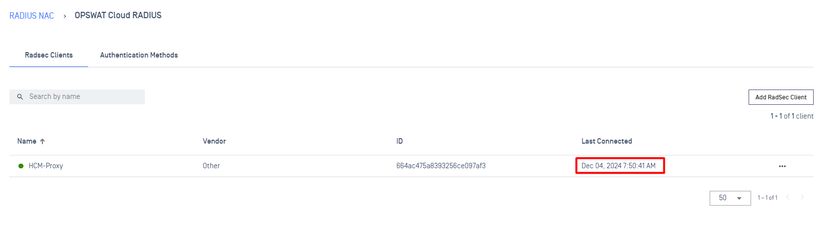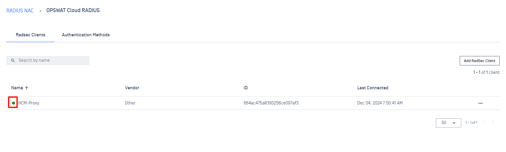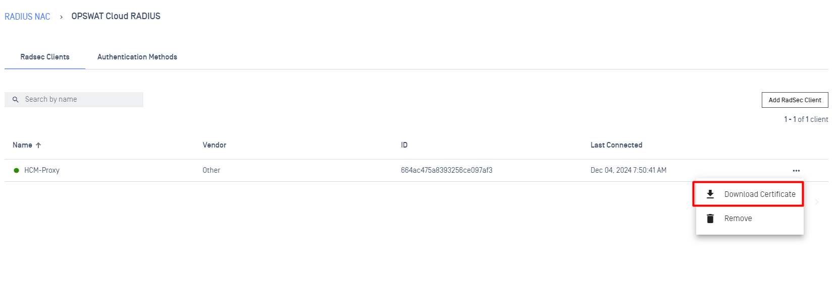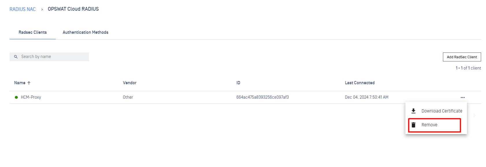 - Click on a specific RadSec Client