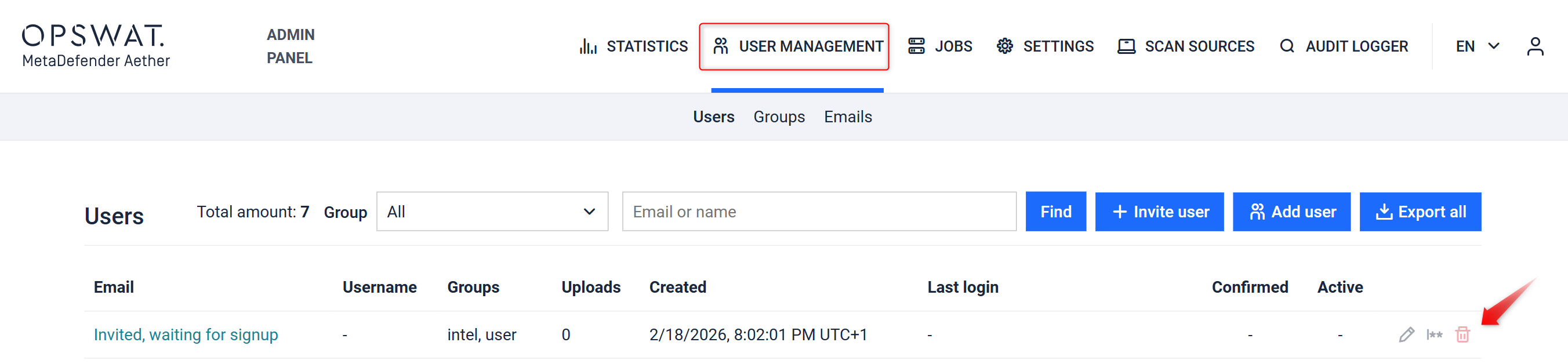 Here you will be shown how to remove user accounts from MetaDefender Aether if it is no longer needed.