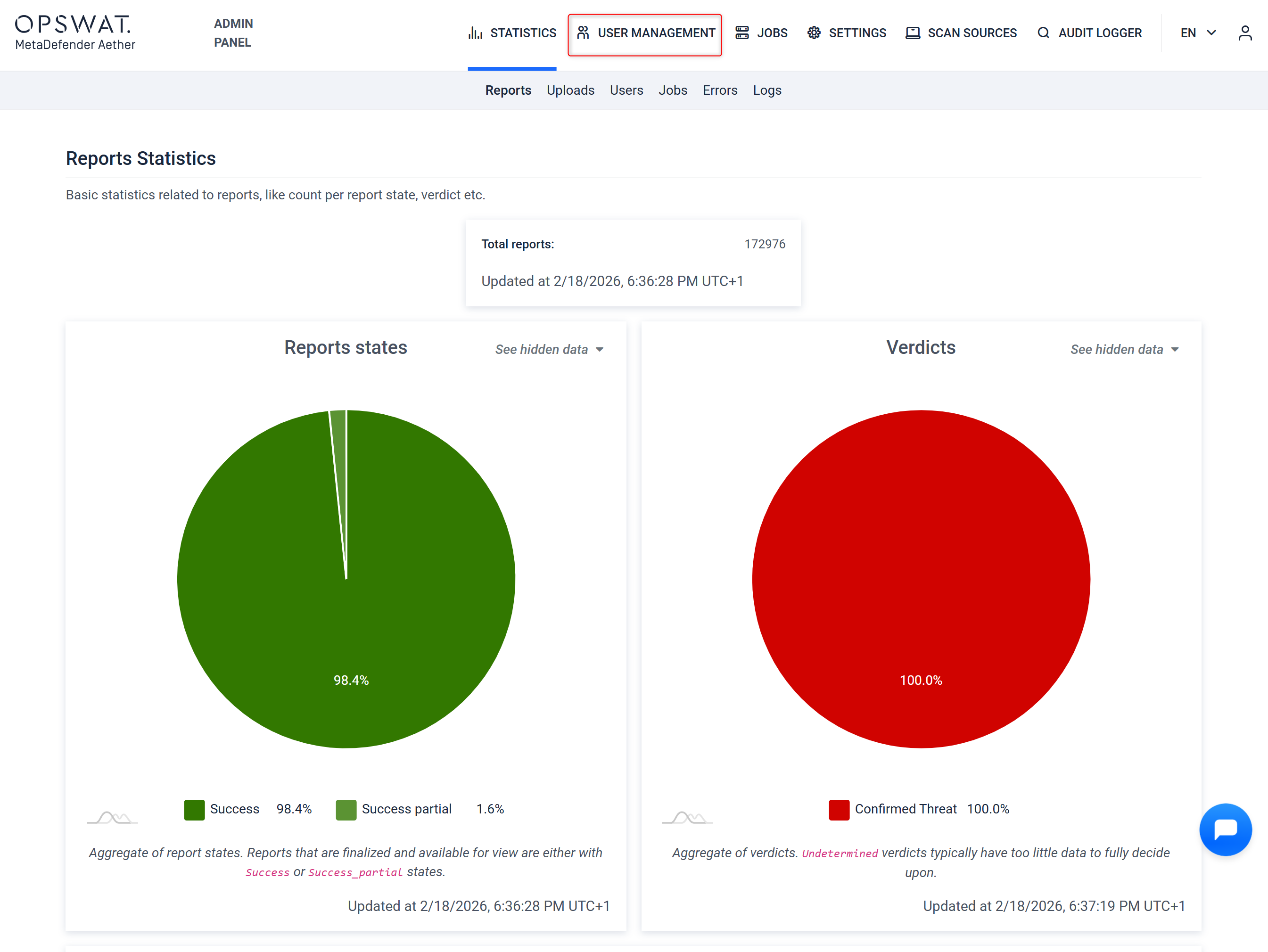 After you arrive to the Report Statistics Dashboard, where you can select "User Management" on the top left area of the menu bar.