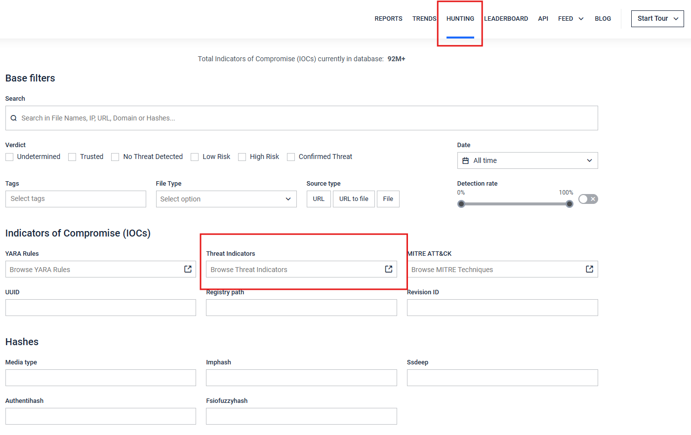 Find the Threat Indicator ID within the Hunting page by searching for the Threat Indicator description.