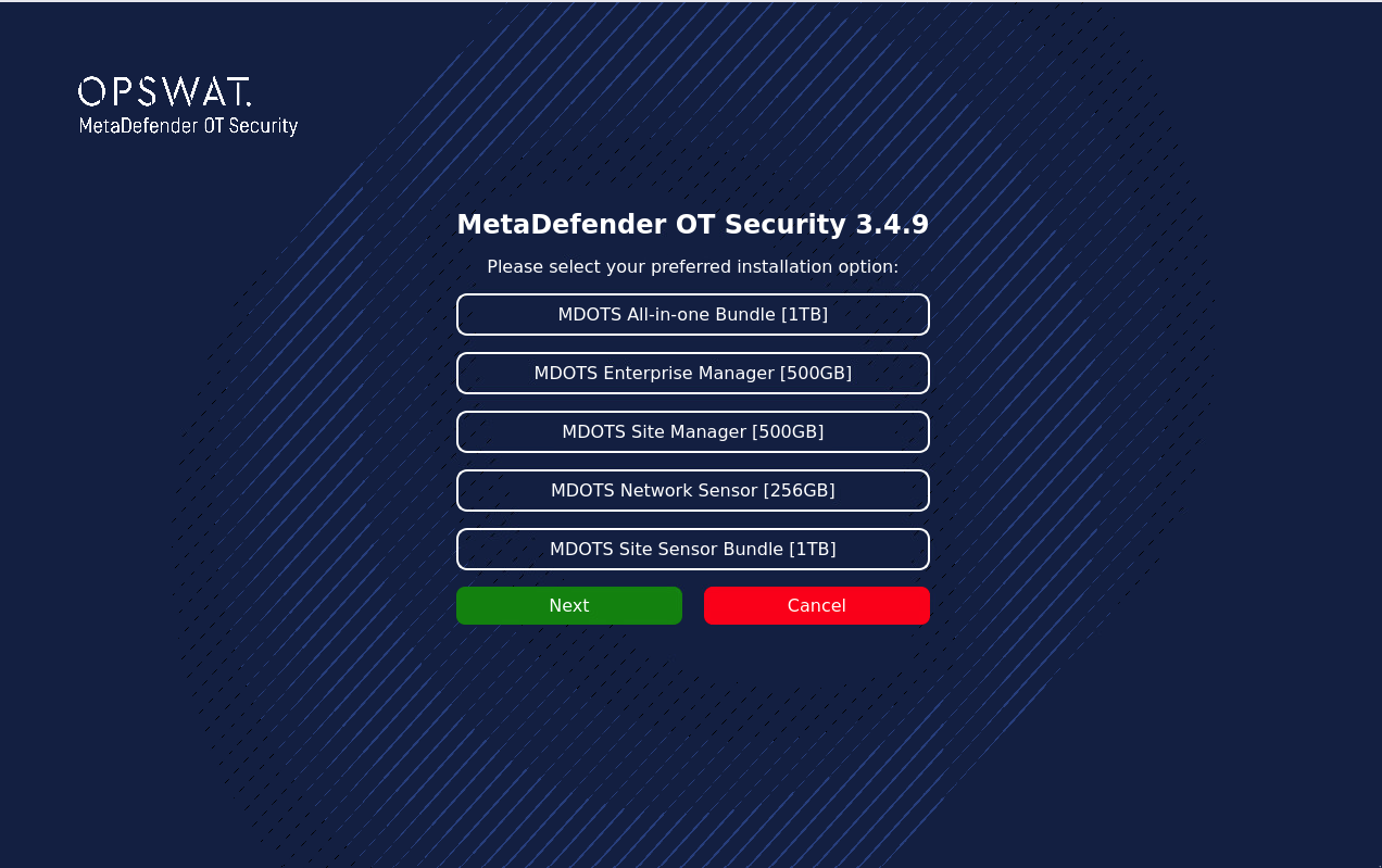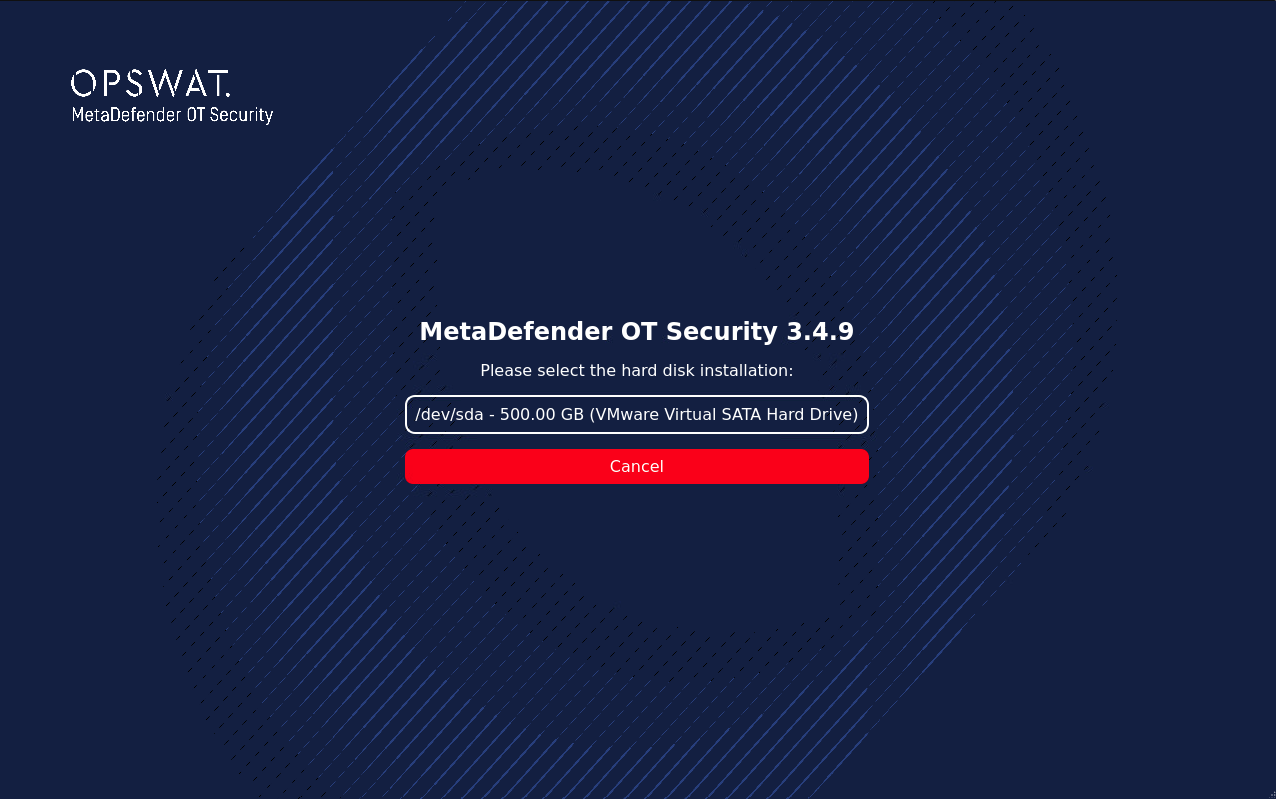 In the last section, the only thing left is to install MetaDefender OT Security onto the machine, which is accomplished almost automatically by the system.