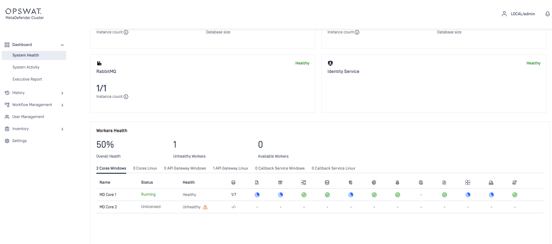 2. Engine update statuses on MetaDefender Core instances can be monitored in Dashboard > System Health > Worker Health.