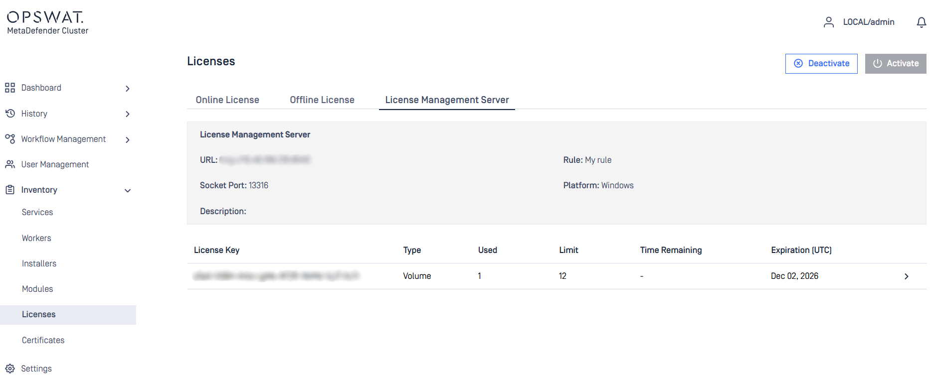 New licensing management model for MetaDefender Cluster to allow license management server to manage the product's license status.