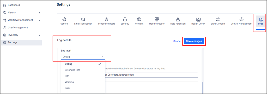 Enabling debug logging level on MetaDefender Core should only be used when necessary and advised by the OPSWAT team.