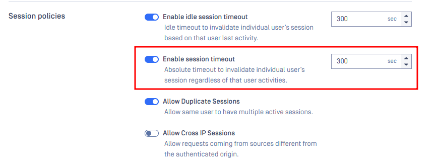Value changed, key='/admin/config/session', parameter='absoluteSessionTimeout', old='0', new='300000', user='LOCAL/admin'Verify the Change