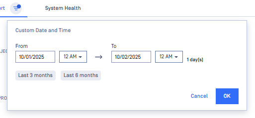 - For example, if your browser’s system time is UTC +07:00, and you select a time range from 12:00 AM to 12:00 AM (one day), the UI will display data accordingly.