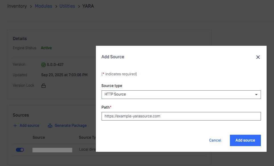For HTTP sources, to protect MD Core from several attack methods, YARA packages must meet certain constraints. Packages that violate these constraints are rejected. The required constraints include:
