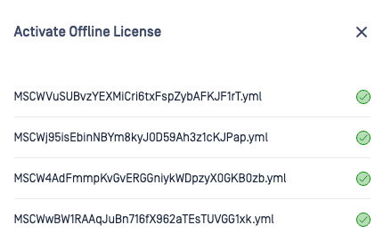 • Once all the license files are obtained. Head back to MDDC Control Center -> Inventory -> Licenses -> Offline Licenses. Click Activate to upload activation files to activate.