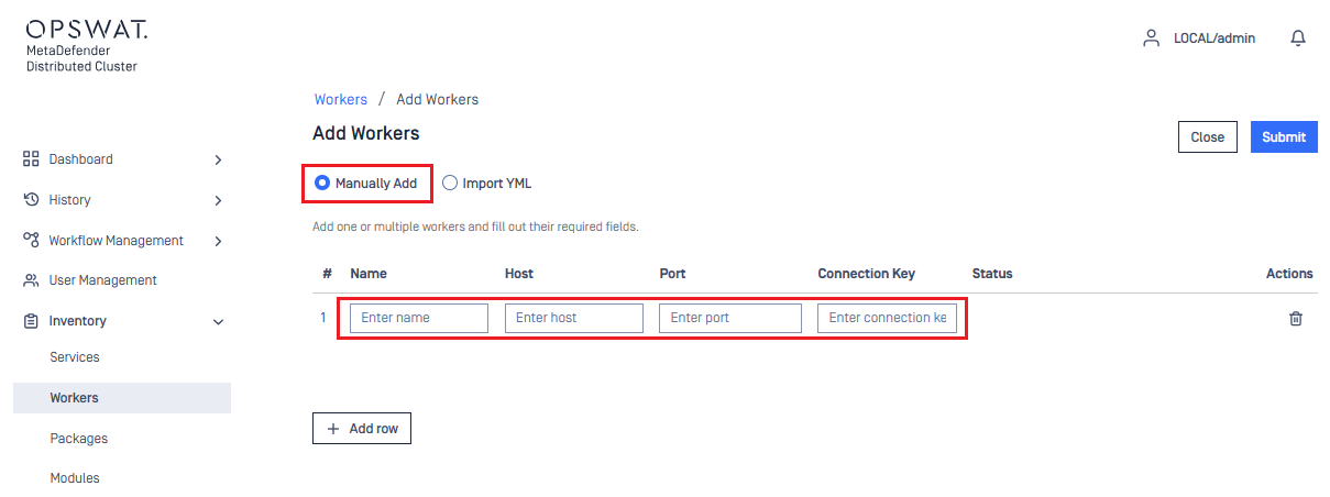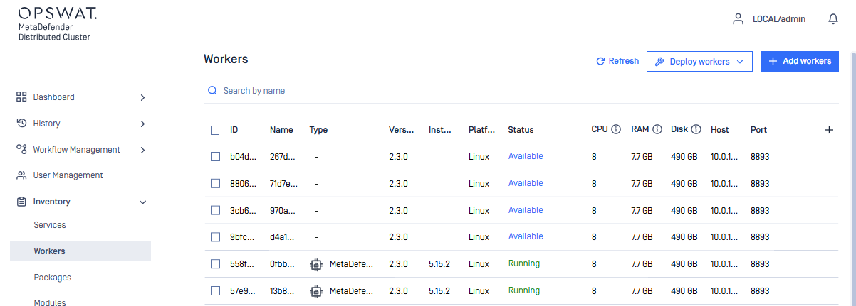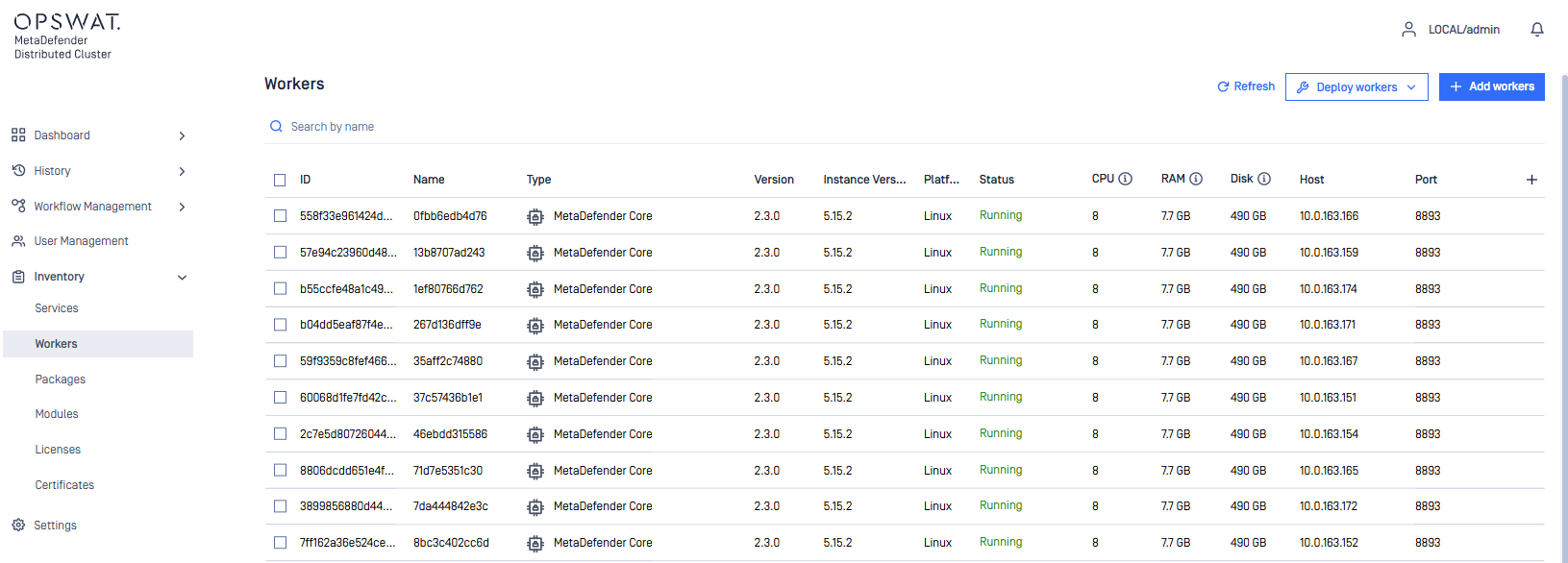This section will allow the system administrator to add the MetaDefender Distributed Cluster (MDDC) Workers which will help deploy and monitor activities of MetaDefender Core, MDDC API Gateway and MDDC Callback Service.