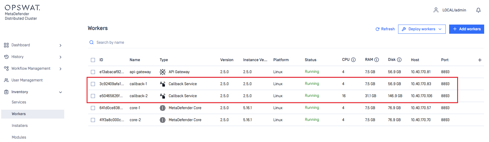 MetaDefender Distributed Cluster Control Center: