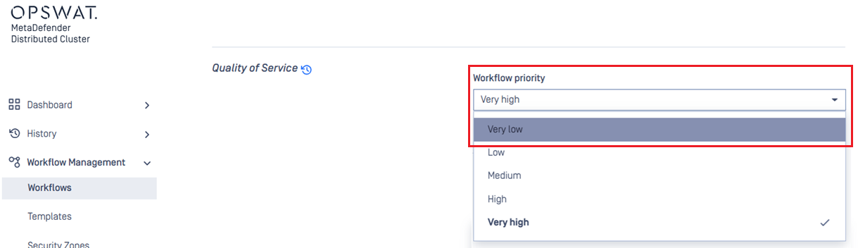 MetaDefender Distributed Control Center allows system administrators to configure the priority of a specific workflow.