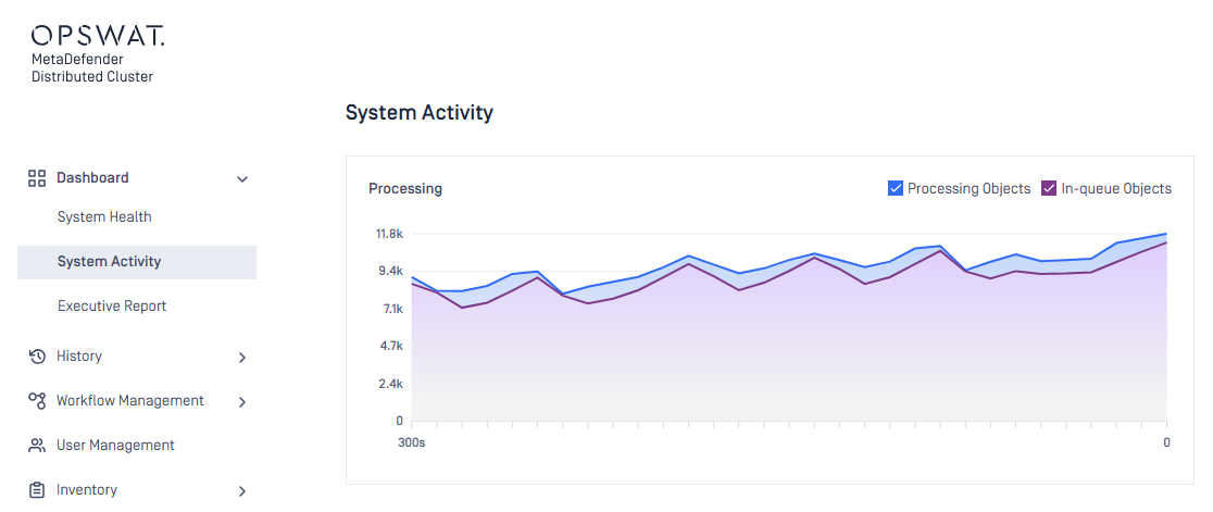 | Scope | MetaDefender Distributed Cluster license, dedicated callback service for scan results, engine package update initiated by folder monitoring, line chart for pending objects in System Activity, time frames available for scan request acceptance and workflow priority. |