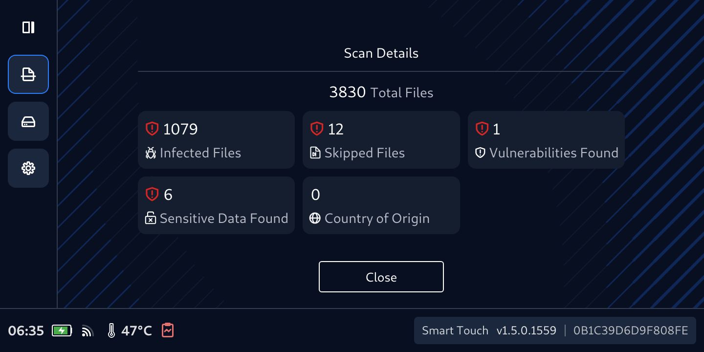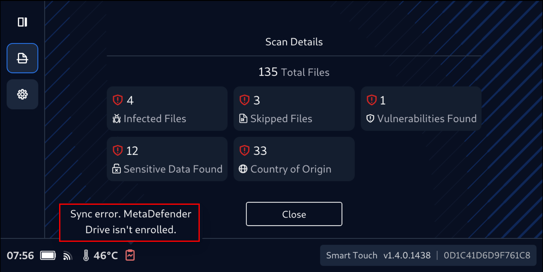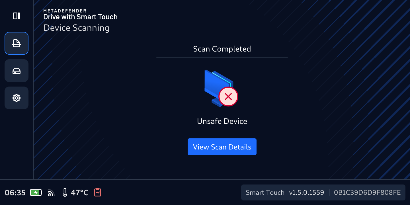 MetaDefender Drive with Smart Touch offers an experience similar to MetaDefender Drive’s USB variants, with additional on-device feedback via the built-in 5.7” touchscreen.
