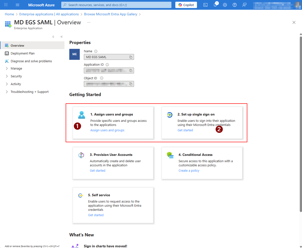 Assign the users/groups as needed, so that they can authenticate once the integration is completed, and proceed with the Single Sign On setup, selecting SAML as method