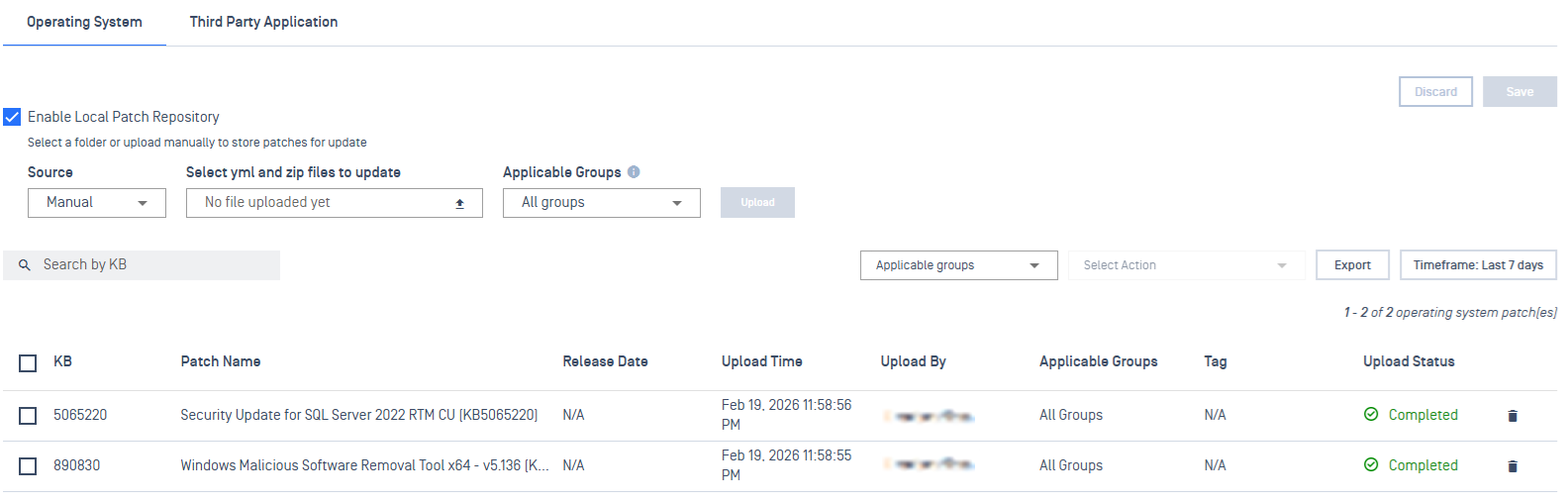 As patch packages are uploaded, My OPSWAT Central Management will validate the package with the descriptor file.