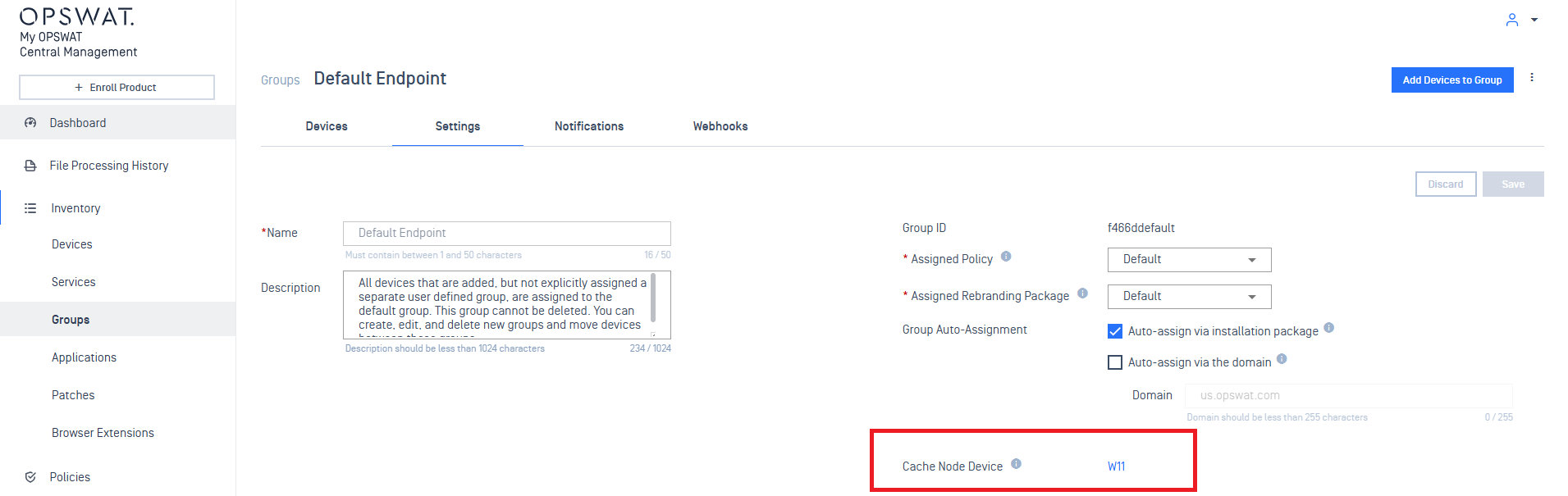 To remove an Endpoint as a Cache Node, navigate to Inventory > Devices > select device to set.