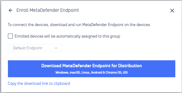 - Click MetaDefender Endpoint > Download. You can choose to enroll the device into a specific group at this stage