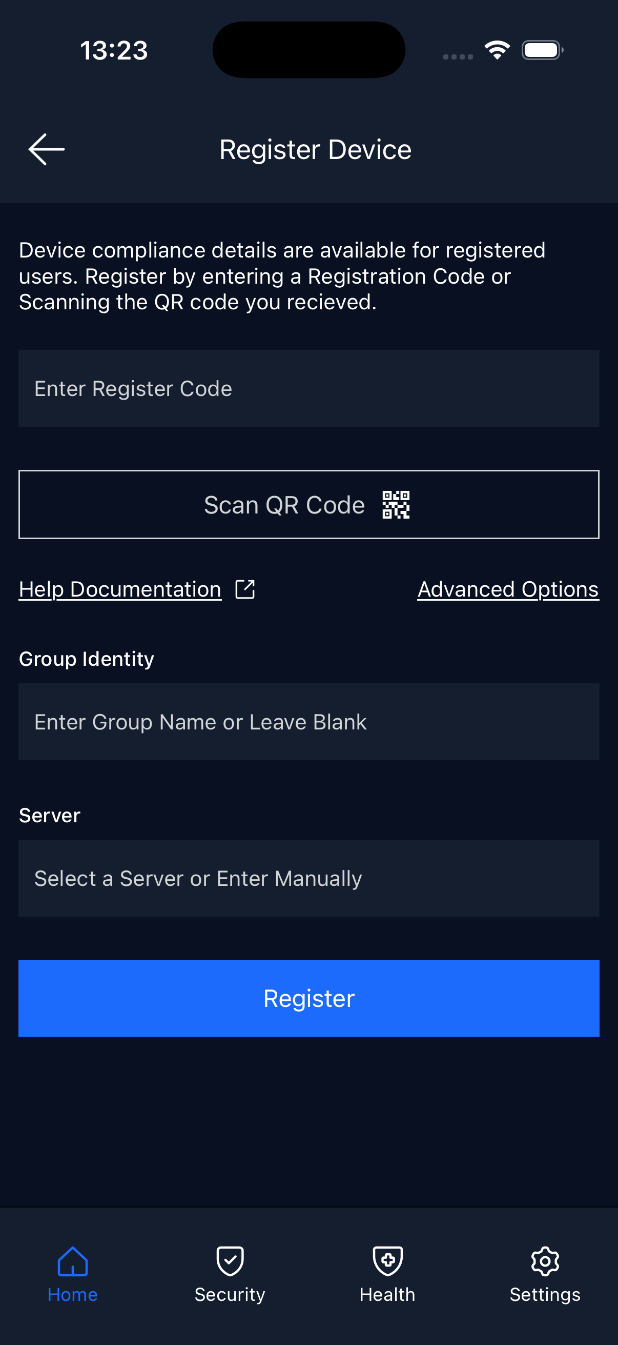 Manual Registration will require users to enter both the registration code and then the group identity code (if applicable), while the QR code is an Automatic Registration method that, once scanned, incorporates registration, group identity and server, without further action required from the user.