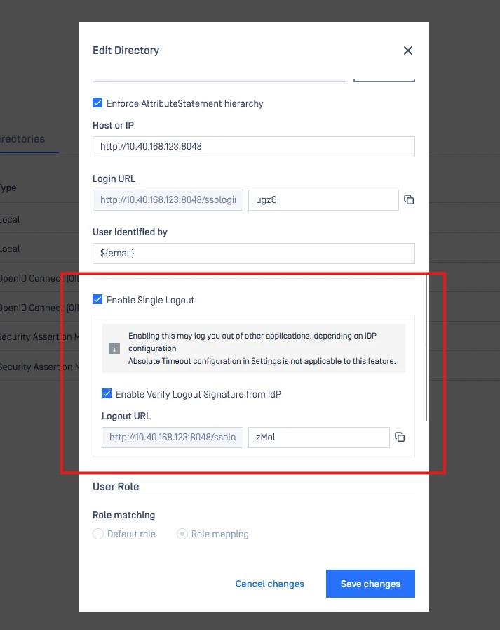 Enable Verify Logout Signature from IdPfor enhanced security. - Populate the