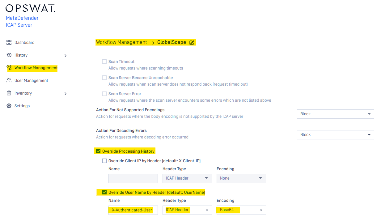 MD ICAP Server -> Workflow Management -> Go to each workflow (Example: GlobalScape workflow)