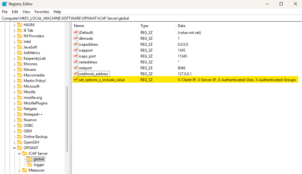 X-Include header on OPTIONS responses X-Client-IP by default, to override this value the MD ICAP Server since v5.10.0 has supported by flag global/set_options_x_include_value (refer to Configuration file)