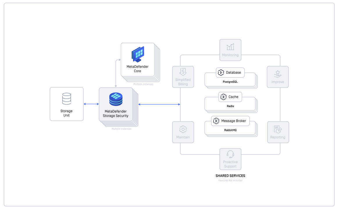 This configuration enables horizontal scaling of MDSS deployments while maintaining shared state through external services, providing improved performance for high-volume scanning workloads.
