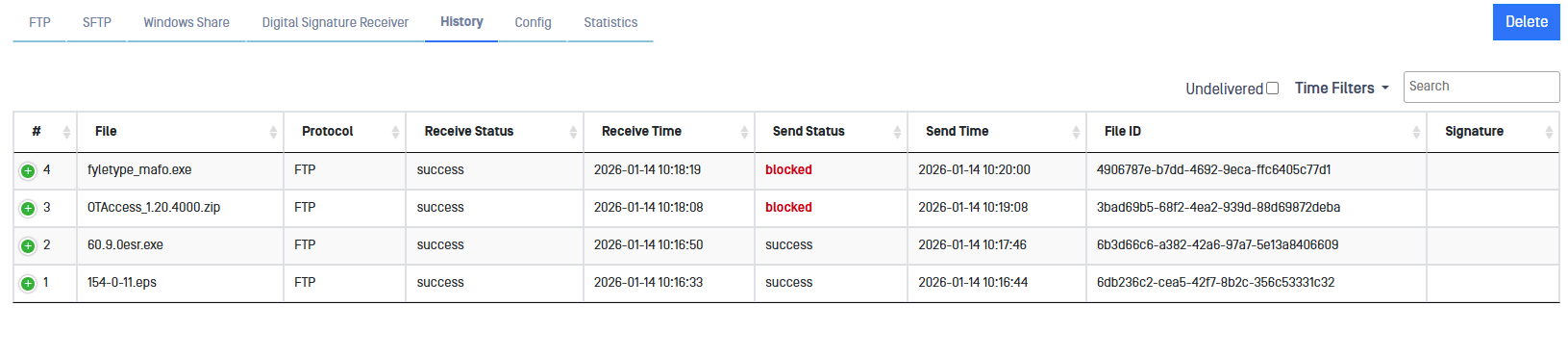 - Undelivered: Only shows undelivered transfers. File haven't been received by RED side.
