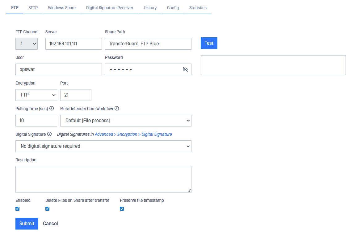Enabled: File transfer will be enabled if this checkbox is ticked.