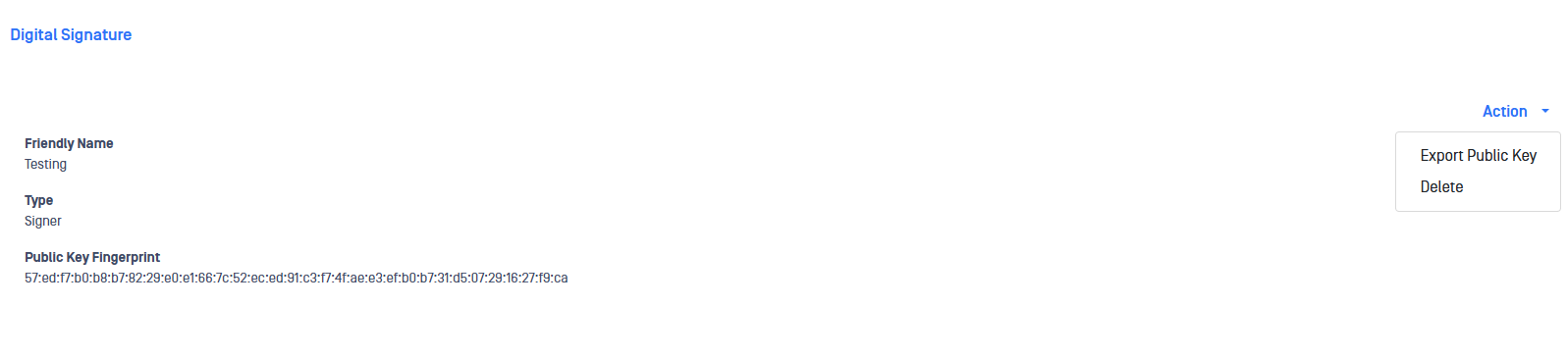 - Certificate: Select a Certificate to be use for Digital Signature. Certificates in Advanced > Encryption > SSL/TLS Credentials