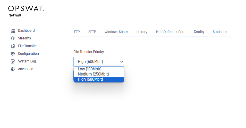Transfer Guard provides a priority mechanism (High, Medium, Low) designed to limit the resources consumed by File Transfer. This throttling mechanism can lower the impact of large volume file transfers as well as compensate for a RED destination File Server that operates slower than the BLUE source File Server.