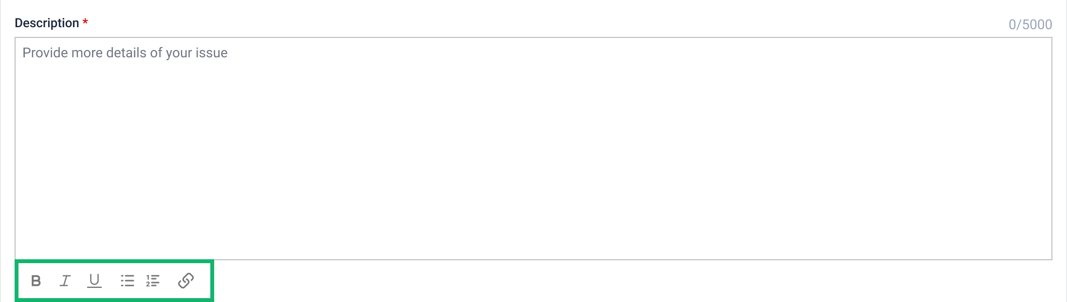 | Rich Text Support in Case Descriptions | The Description field in the Submit a Case form now supports bolding, bullets, and hyperlinks for more precise issue reporting. ![]() |