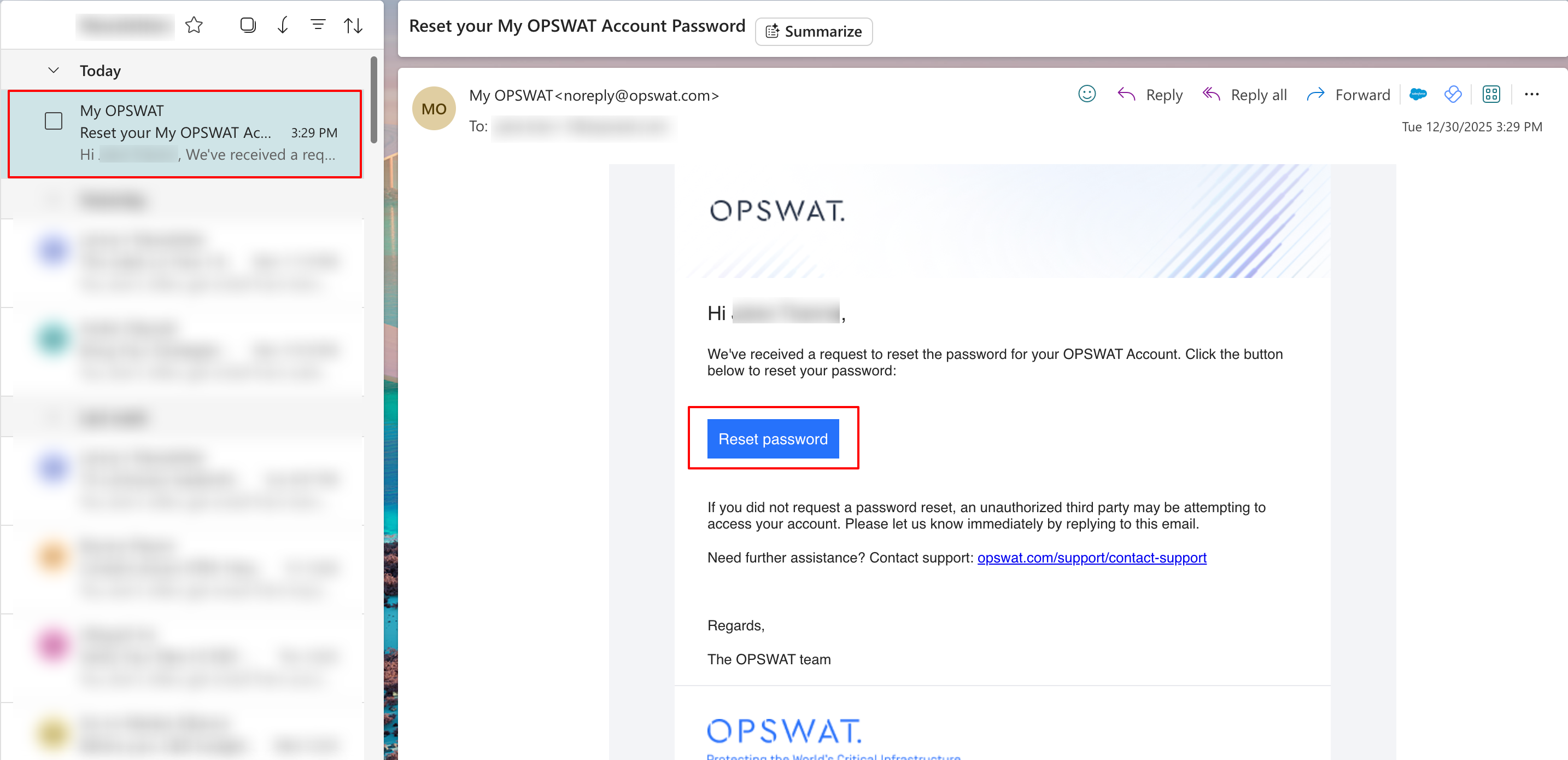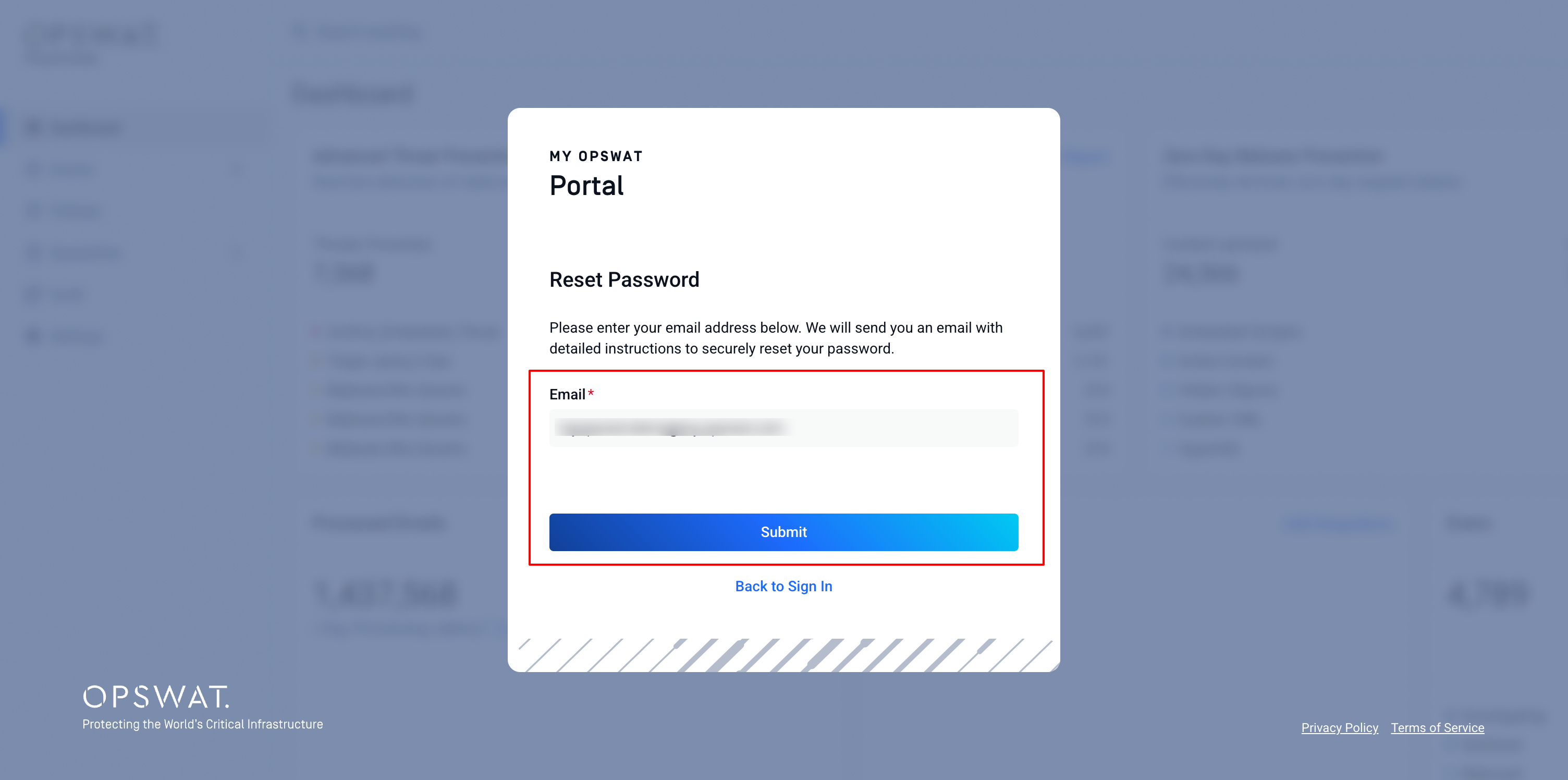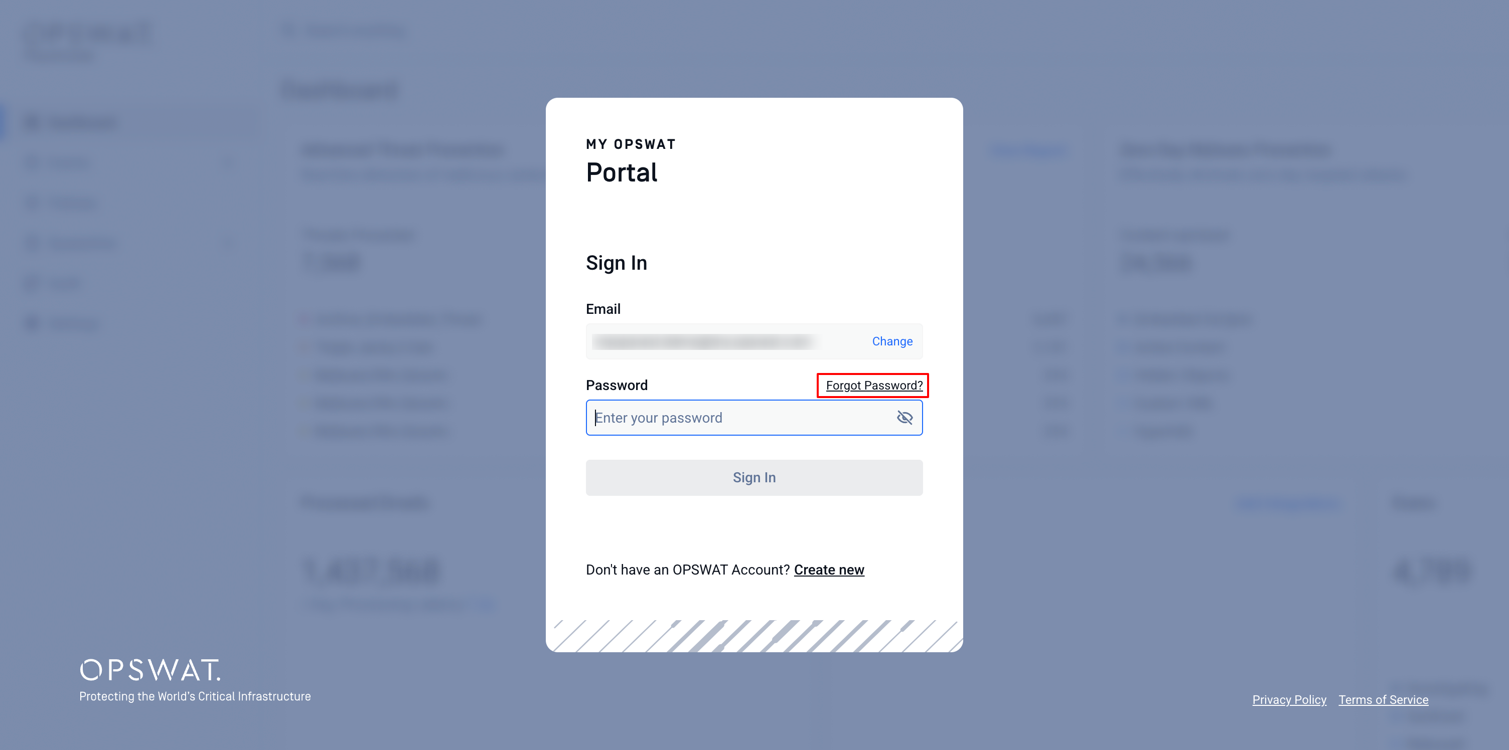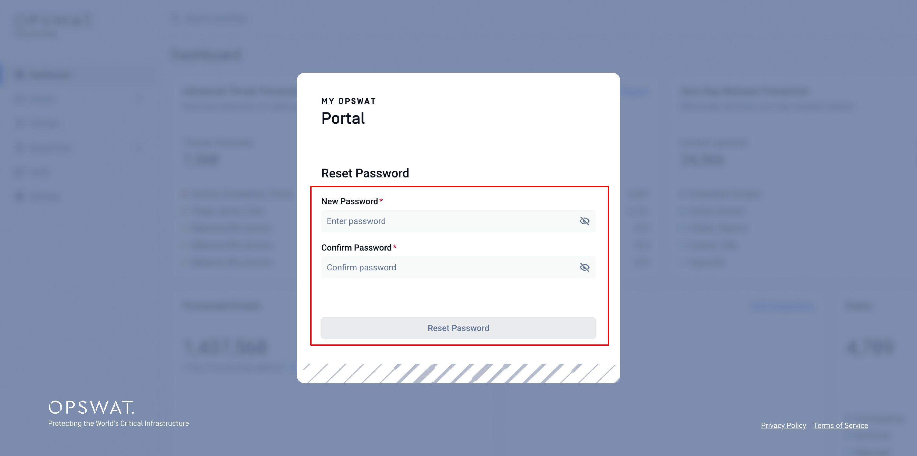 - Your password reset process is now complete. You will then be redirected to the My OPSWAT Portal login page, proceed to log in to your account with your new password.