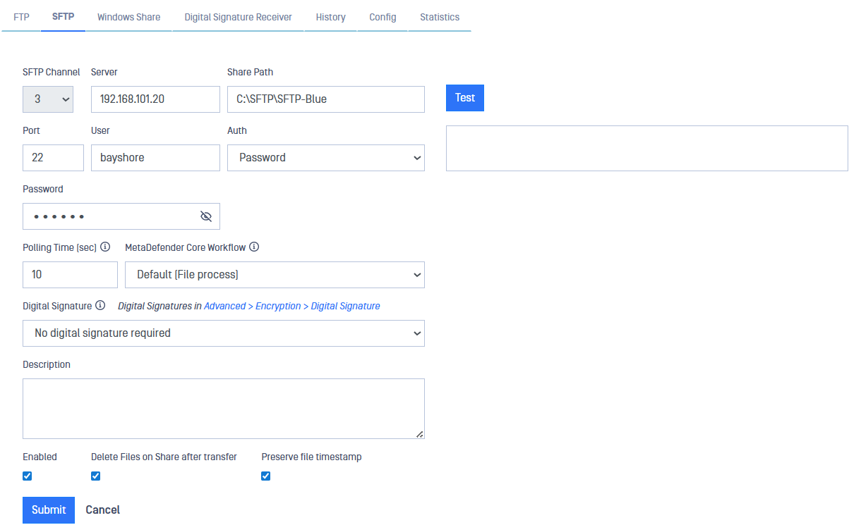 - SFTP Channel: Assign a channel number.