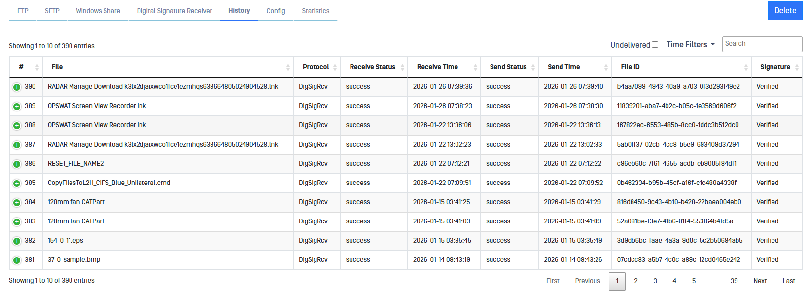 - Undelivered: Only shows undelivered transfers. File haven't been received by RED side.
