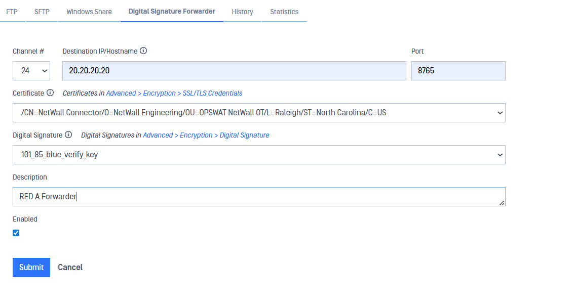 - Digital Signature: Select a Digital Signature for the Forwarder. Digital Signatures in Advanced > Encryption > Digital Signature